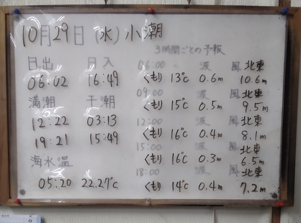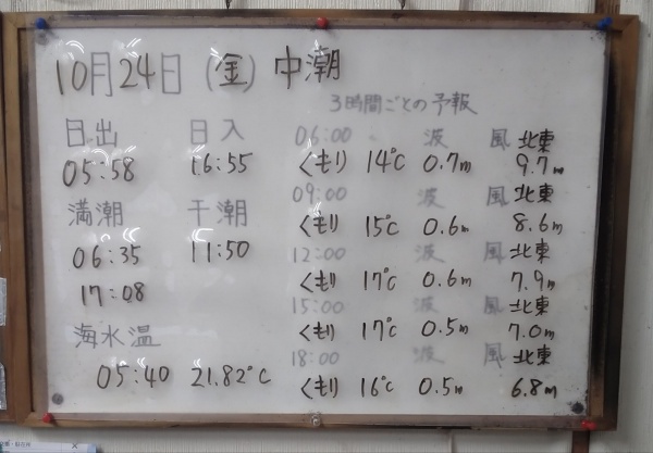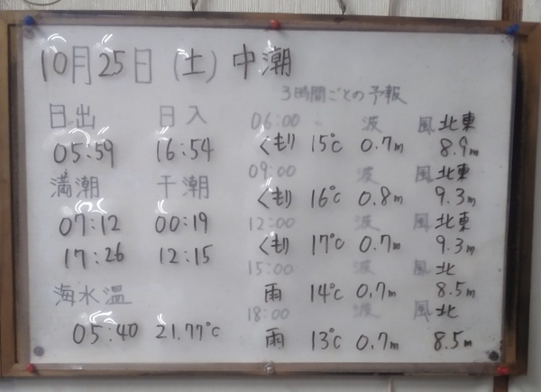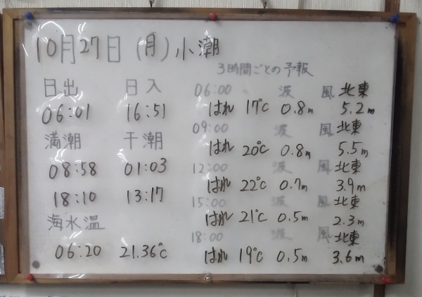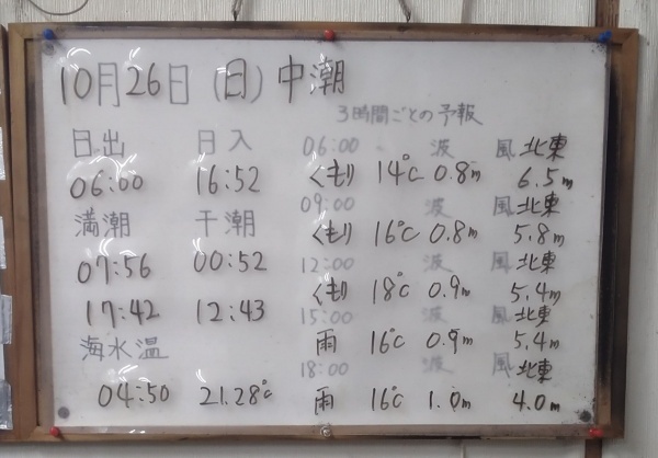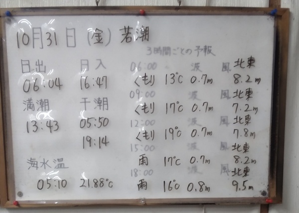 10月25日(土)中潮 今日の海の様子/釣果情報
