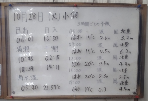 10月28日(火)小潮 今日の海の様子/釣果情報
