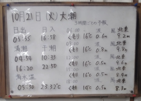 10月21日(火)大潮 今日の海の様子/釣果情報