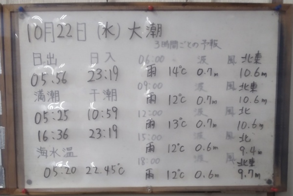10月22日(水)大潮 今日の海の様子/釣果情報