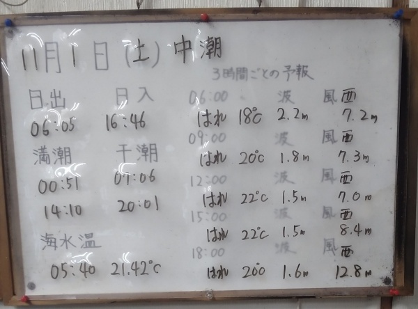 11月1日(土)中潮 今日の海の様子/釣果情報