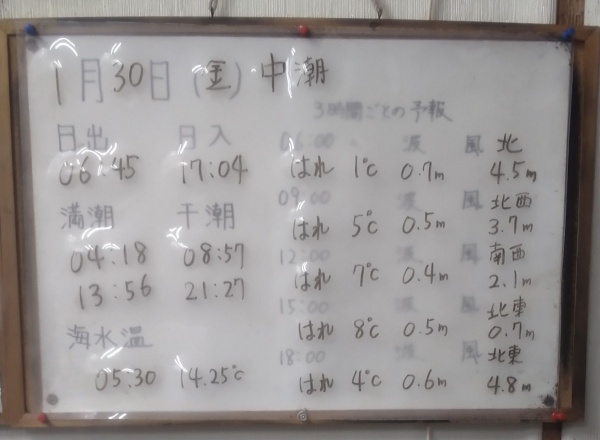 1月30日(金)中潮 今日の海の様子/釣果情報