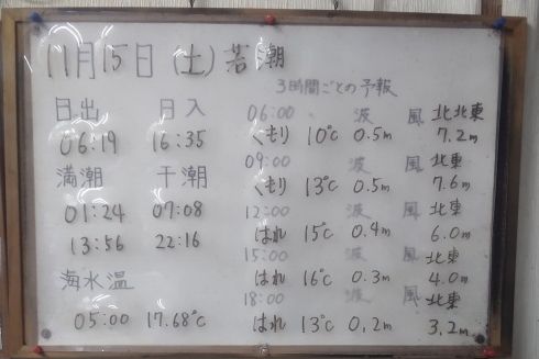 11月15日(土)若潮 今日の海の様子/釣果情報