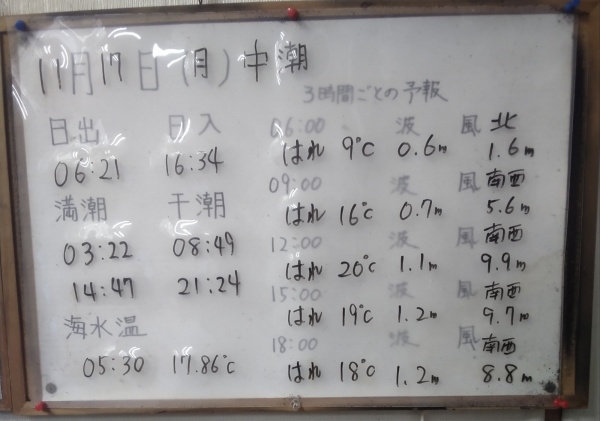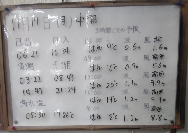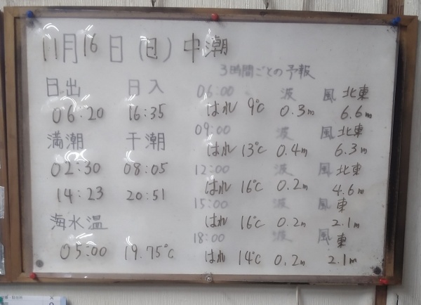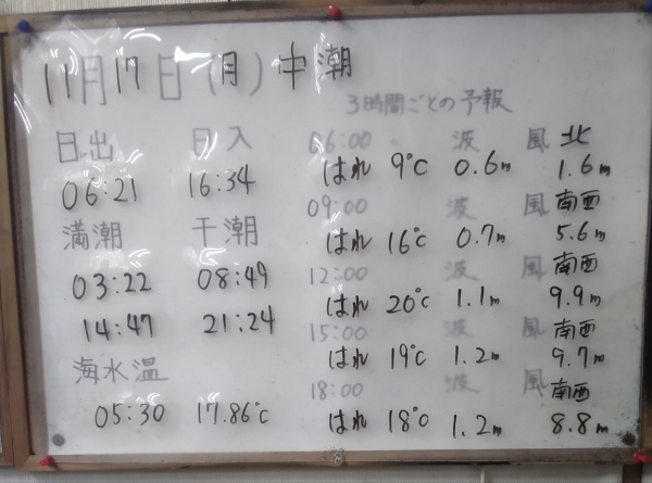 11月10日(月)中潮 今日の海の様子/一昨日の釣果情報