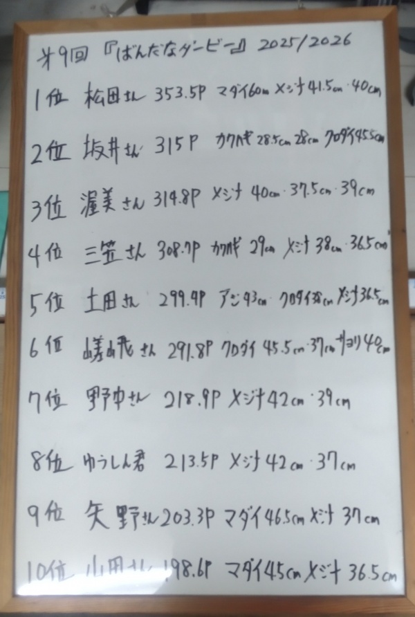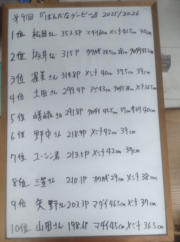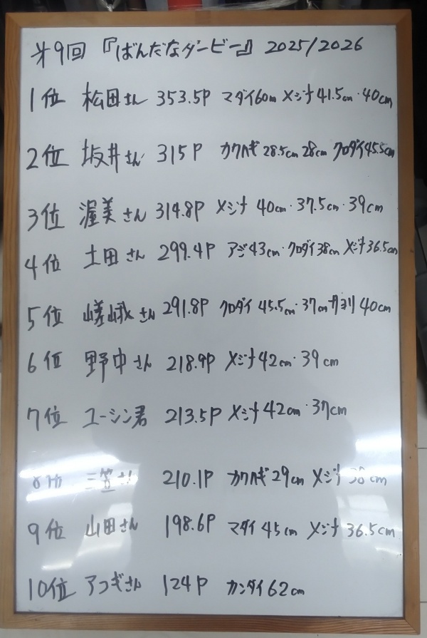 【ばんだなダービー】もいよいよ大詰め。これから海は間違いなく良くなります。最後のドラマがおこりそうですね。