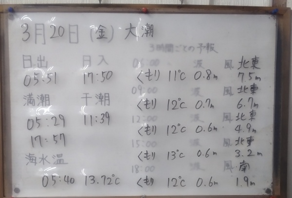 3月21日(土)中潮 今日の海の様子/釣果情報