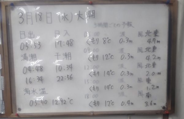 3月16日(月)中潮 今日の海の様子/釣果情報