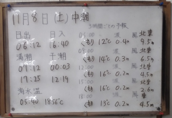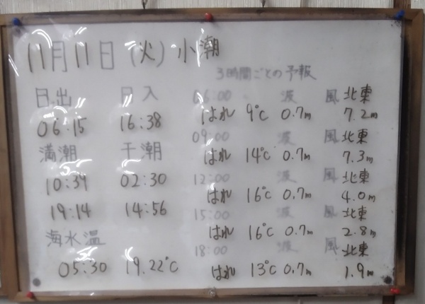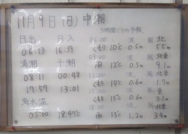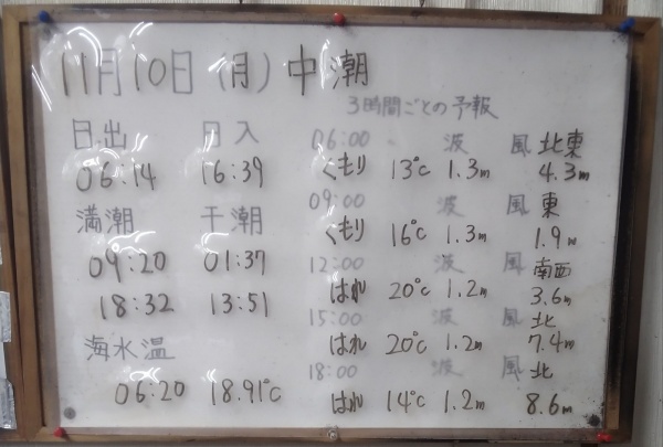 11月10日(月)中潮 今日の海の様子/一昨日の釣果情報