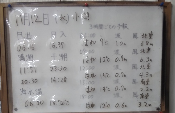 11月12日(水)小潮 今日の海の様子/釣果情報