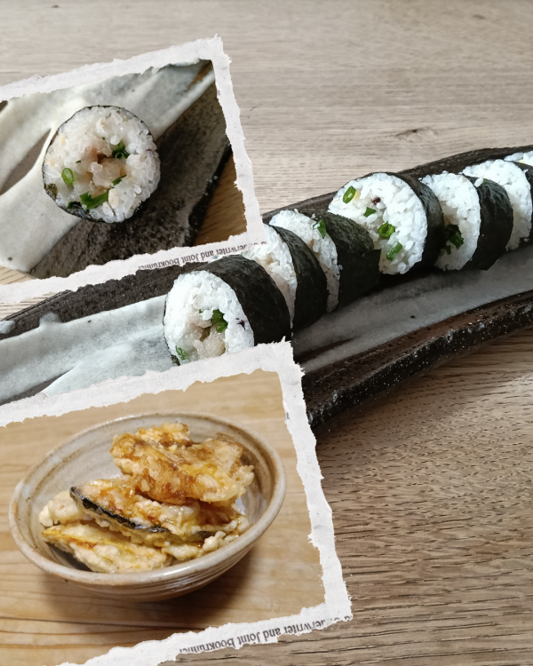 先日釣ったメジナが恵方巻きの前哨戦とクマちゃん自身が収穫したなすとかぼちゃメジナの天丼に仕上がりました。