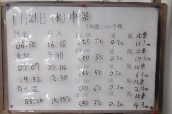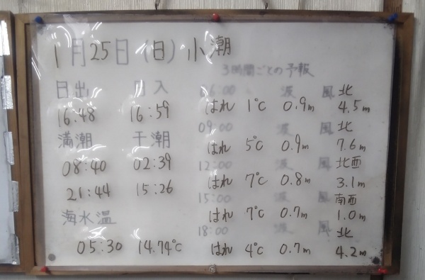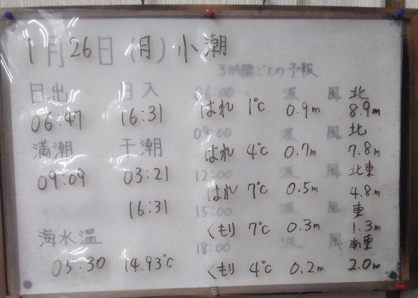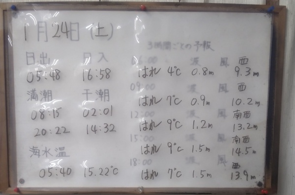 1月24日(土)中潮 今日の海の様子/釣果情報