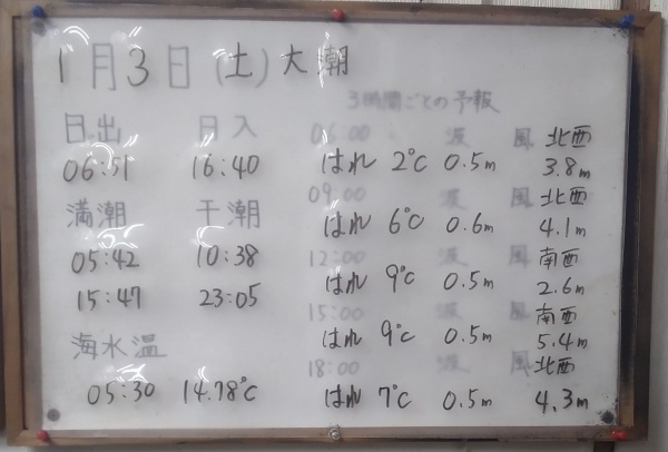 1月3日(土)大潮 今日の海の様子/釣果情報