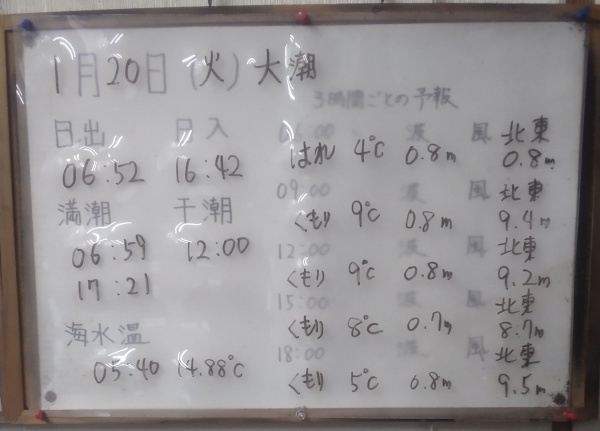 1月20日(火)大潮 今日の海の様子/釣果情報