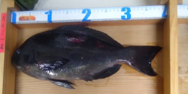 昼頃に『潮見2番』に入った山田さんの釣果は良型のメジナと大ボラ。納竿間際に掛けた大型メジナは残念ながらラインブレイクでバラシ。惜しかったですね。