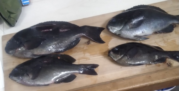 『潮見の3番』で18時から22時の間に釣り上げた魚は40㌢と39㌢の大型メジナを含む4枚のメジナ。