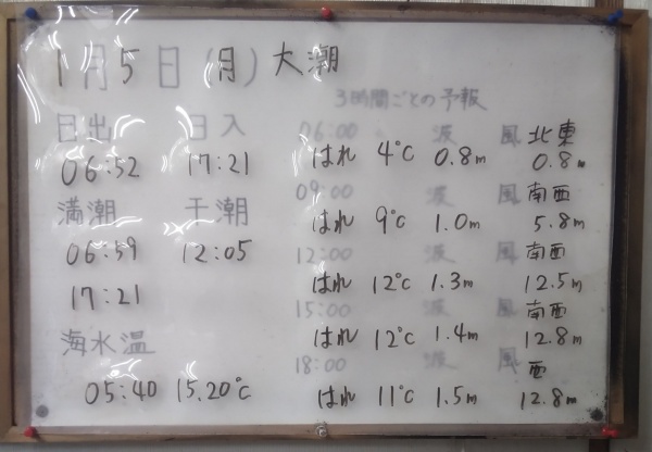 1月5日(月)大潮 今日の海の様子/釣果情報