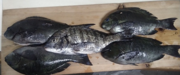 生け簀からの脱走ものや、放流、天然ものと入り雑じって釣れています。クロダイは例年通りです。