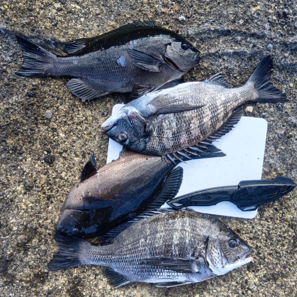 夜中の2時にクロダイ。朝まずめの時合にメジナとクロダイの連発。