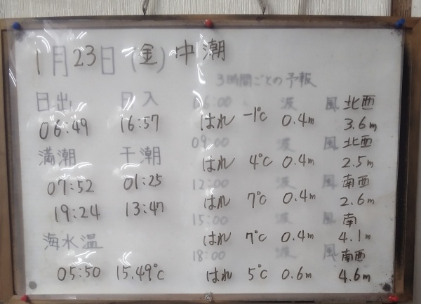 1月23日(金)中潮 今日の海の様子/釣果情報
