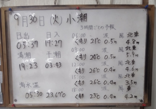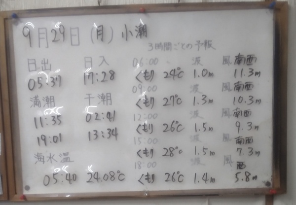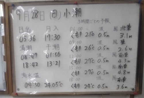 9月28日(日)小潮 今日の海の様子/釣果情報