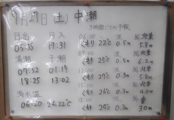 9月27日(土)中潮 今日の海の様子/釣果情報