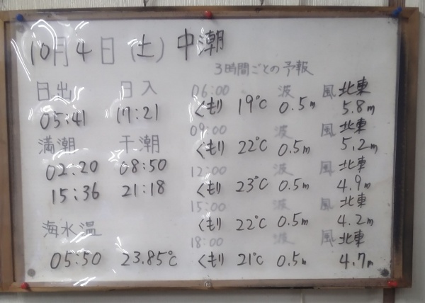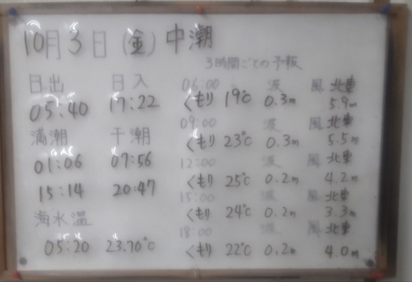 10月4日(土)中潮 今日の海の様子/釣果情報