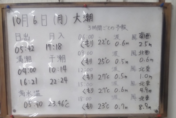 10月6日(月)大潮 今日の海の様子/釣果情報