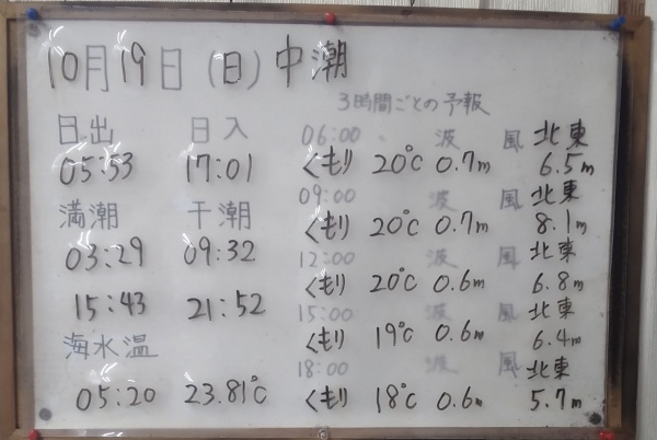 10月19日(日)中潮 今日の海の様子