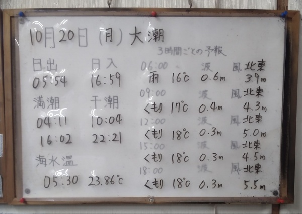 10月20日(月)大潮 今日の海の様子/釣果情報