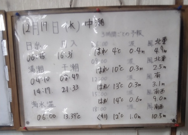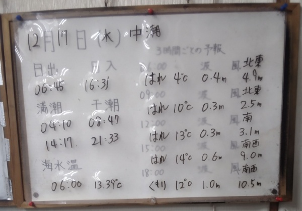 12月17日(水)中潮 今日の海の様子/釣果情報