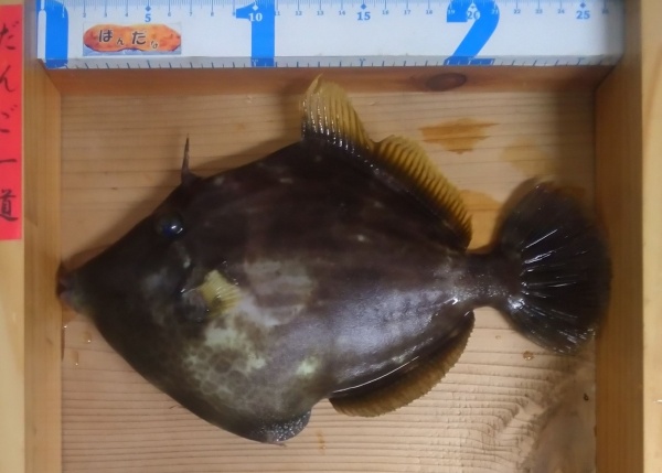 『潮見4番』に入った坂井さんは、先週に引き続き28㌢のカワハギ。【ばんだなダービー】に登録です。カワハギ2尾で暫定1位になりました。
