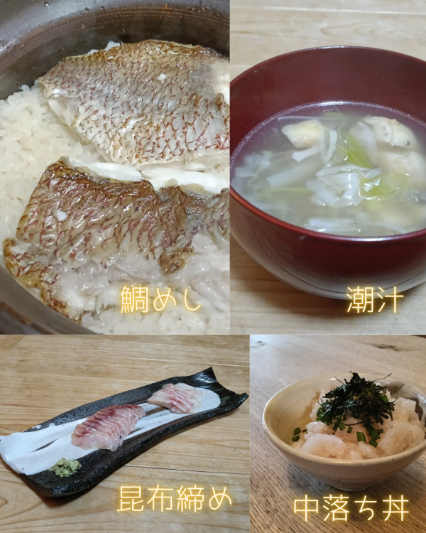 クマちゃんが先日釣ったマダイで色々と美味しい料理が出来ました。