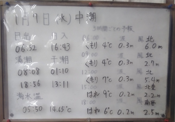 1月7日(水)中潮 今日の海の様子
