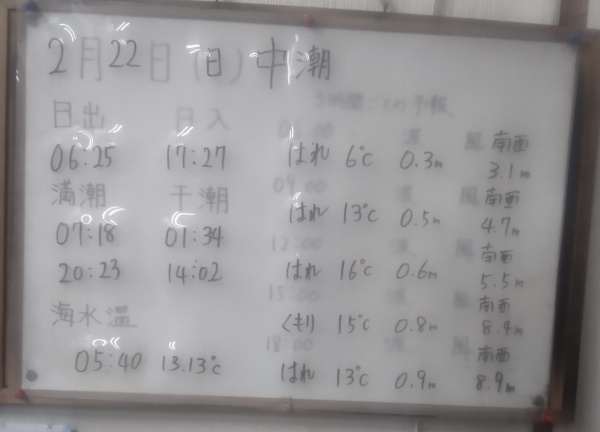 2月22日(日)中潮 今日の海の様子/釣果情報