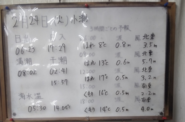 2月24日(火)小潮 今日の海の様子/釣果情報