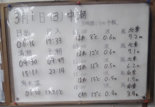 3月1日(日)中潮 今日の海の様子