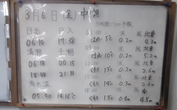 3月6日(金)中潮 今日の海の様子/釣果情報