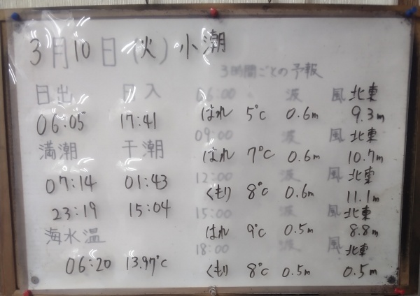 3月10日(火)小潮 今日の海の様子/釣果情報