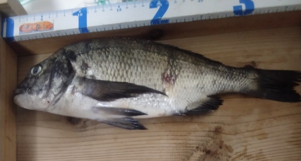 なんとか若いクロダイを釣り上げました。