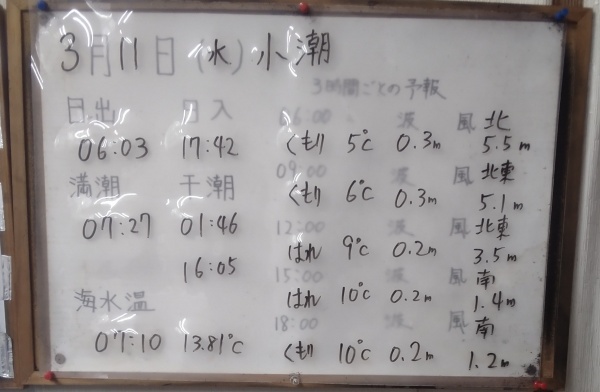 3月11日(水)小潮 今日の海の様子