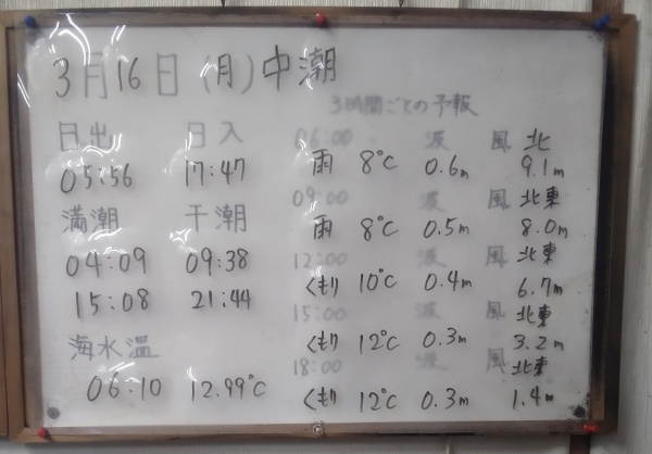 3月16日(月)中潮 今日の海の様子/釣果情報